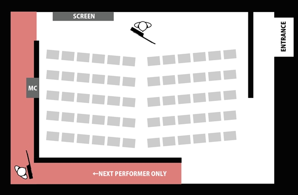 図の赤い部分は「次の出場者の待機エリア」です。(観覧者は立入禁止)