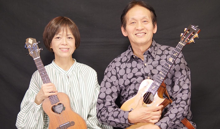 ジャズウクレレ奏者でアロージャズオーケストラのギタリストでもある中村たかしと、ウクレレだけでなくバンジョー、ボーカルも得意とするかねだたつことのスウィング・ウクレレデュオ。