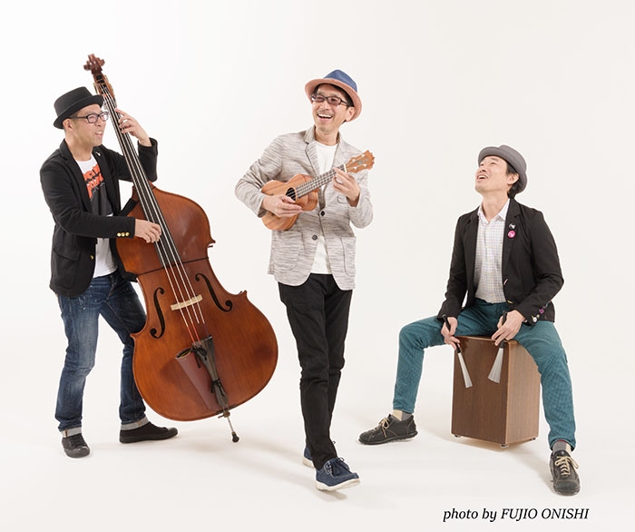 2012年結成、ウクレレ、ウッドベース、パーカッションのアコースティックJazzトリオ。超絶技巧ウクレレとスイング感溢れるリズムに魅了される。